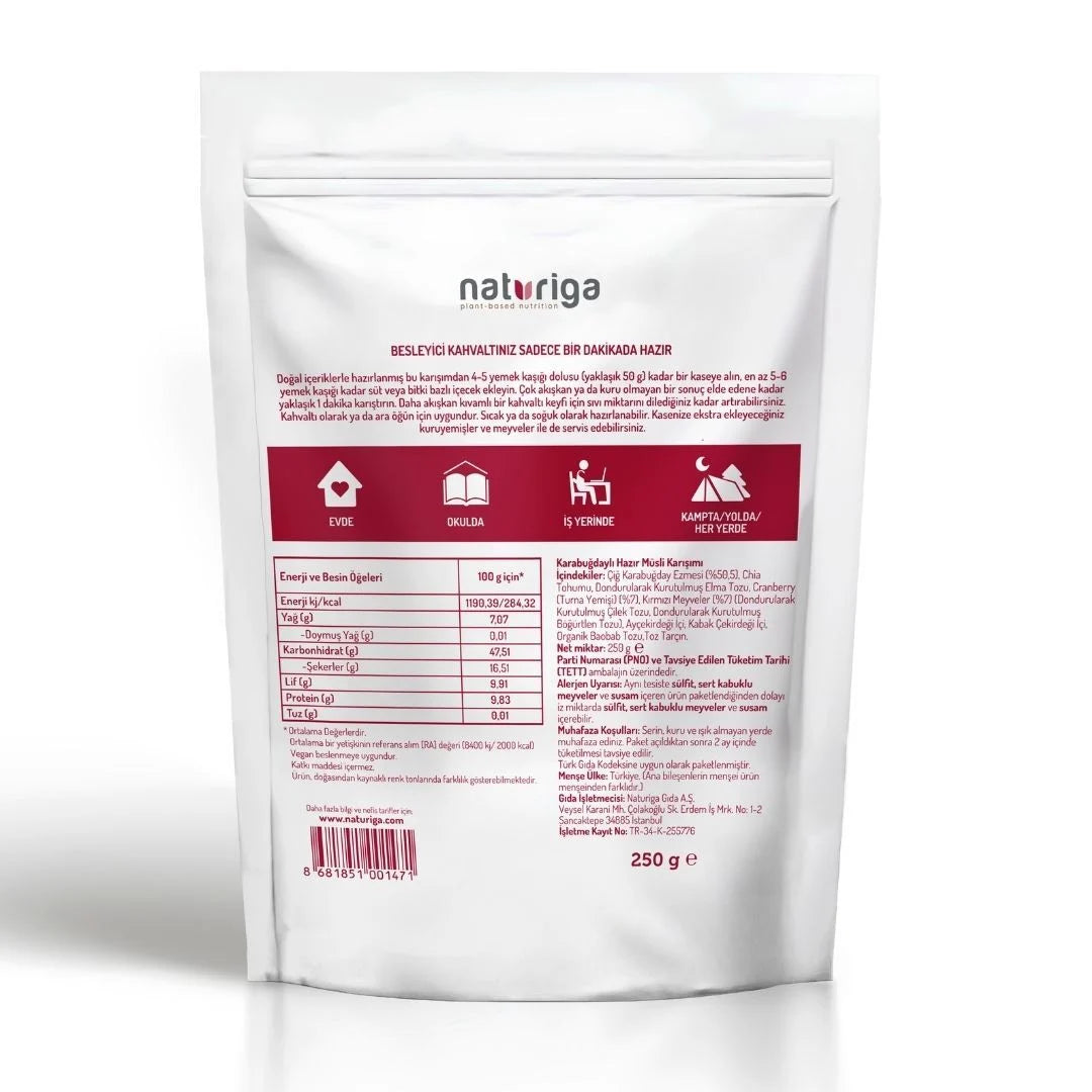 Naturiga hazır kahvaltı karışımı ile sağlıklı bir kahvaltı ya da ara öğün hazırlamak gerçekten çok kolay. Kısa sürede hazır olabilmesi için ince ince doğranmış veya kalın formda çekilmiş besinleri bir araya getirdik.