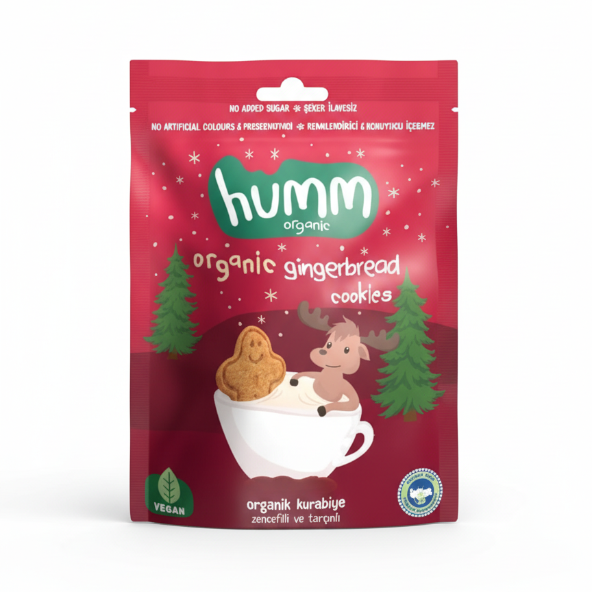 Humm Organic en kaliteli malzemeleri kullanır. Bu kurabiyeler, organik buğday unu, organik elma suyu konsantresi, organik ayçiçek yağı, organik toz zencefil (%0,5), organik toz tarçın (%0,5) ve kabartıcı (sodyum bikarbonat) gibi doğal içeriklerle özenle hazırlanır. İçerdikleri doğal bileşenlerle yüzlerce kurabiye seçeceği arasından öne çıkarlar çünkü hiçbir şekilde renklendirici veya koruyucu madde içermezler. Ayrıca, şeker ilavesiz formülleriyle diyetinde şekerden kaçınması gereken herkes için pratik bir lezzettir.
